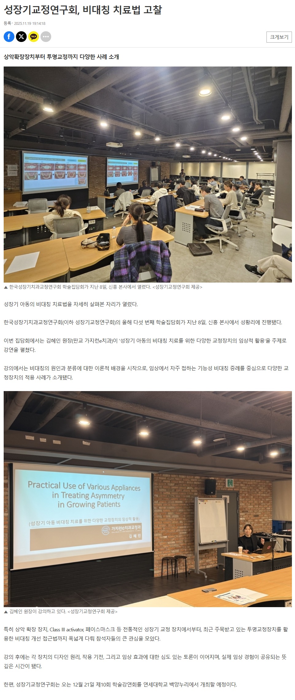[치의신보] 성장기교정연구회, 비대칭 치료법 고찰